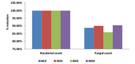 圖1:細菌和真菌計數的減少百分比。