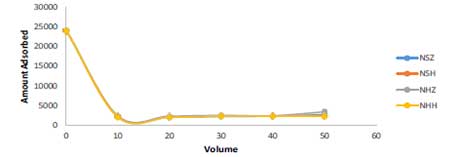 通過改變通過柱子并與活性炭接觸的廢水的量來實現廢水的體積對每種測試活性炭的吸附能力的影響。四種原材料做成的活性炭對微生物參數的吸附趨勢相似。吸附細菌和真菌的最有效的初始體積是10cm3。在初始體積為10cm 3時,活性炭有效地吸附廢水中的高細菌和真菌負荷,此后吸附量幾乎保持恒定,如圖4和5所示。